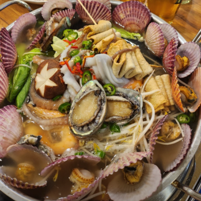 조개전골에 가리비가 메인이라 더욱 좋았고 우러난 국물은 진국입니다.