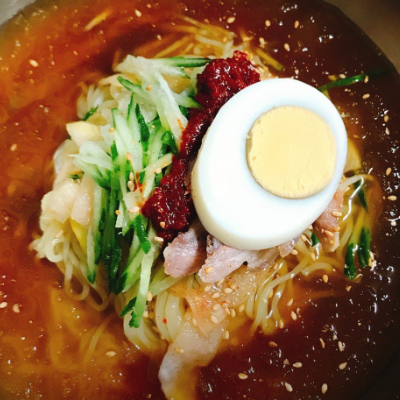 면이 보통 밀면집보다 살짝 두꺼운 느낌인데 비게없게 탱글하게 잘 삶아주셔서 맛있게 잘 먹었습니다.
