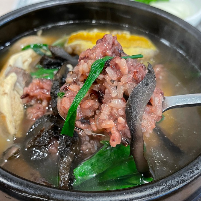 능이 삼계탕으로 몸보신 하고 왔어요. 깔끔하면서도 진한 국물에 가득찬 흑미밥까지 완벽합니다.