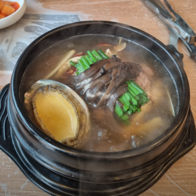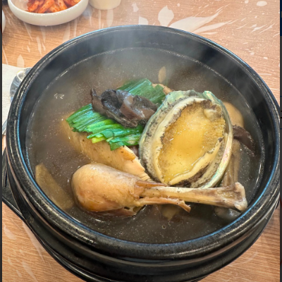 여름철 보양은 여기 추천드려요. 삼계탕인데 전복을 추가한 전복능이삼계탕을 먹었습니다.
