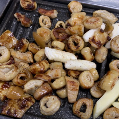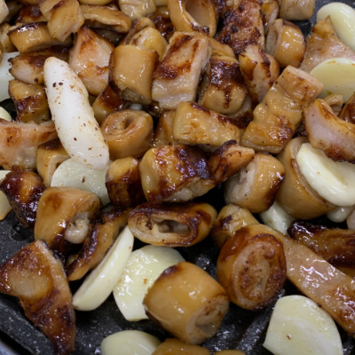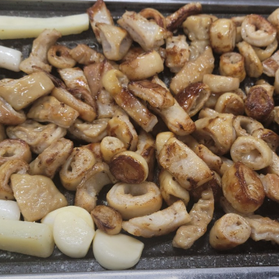 양념막창은 달달하지만 많이 맵답니다. 다 구워서 양념에 버무려 조리해서 나옵니다.