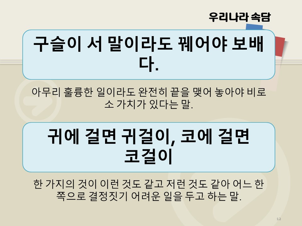 1. 구슬이 서말이라도 꿰어야 보배다.