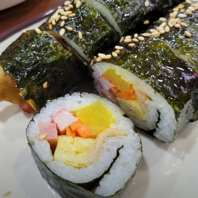 김밥은 완전 옛날 시골 김밥 같은 느낌이고 캠핑장에서 먹었는데 맛있어요.