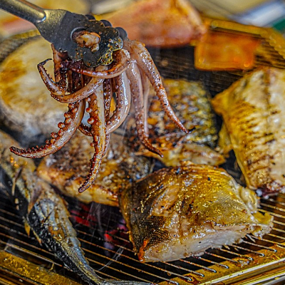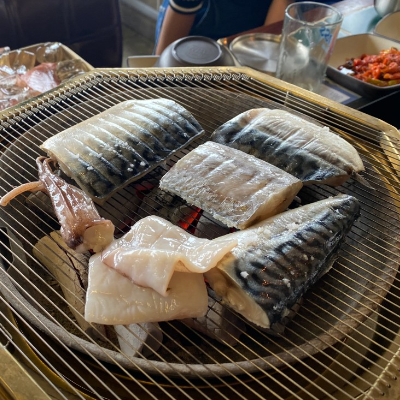 숯불직화모듬생선구이/국내산 한치 물회