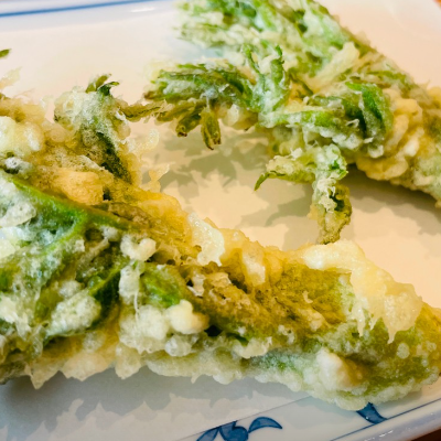 튀김은 바로 튀겨서 하나씩 차례대로 접시에 놓아줍니다. 세트를 시켜서 야채3종, 붕장어, 새우튀김이 나왔는데, 두릅은 최고였어요.