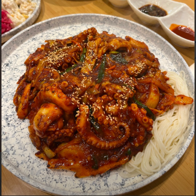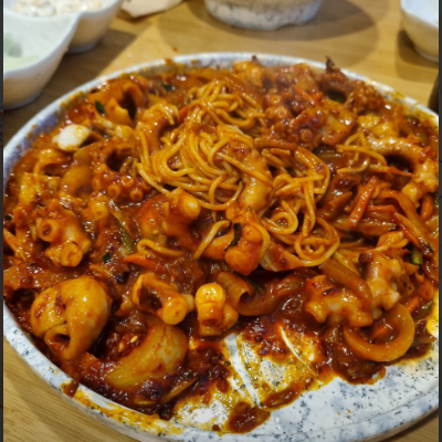 주차하기도 편하고 인테리어도 깔끔해요. 낙지볶음 주문했는데 매운맛으로 주문했더니 먹다가 이마에 땀이 맺힐 정도로 매콤했어요.