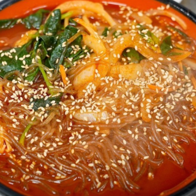 매운잡채랑 족발이랑 파는 여러곳이있는데 골라서 여기로 와요. 맛도 얼큰하게 기본인지 고를수 있어요.