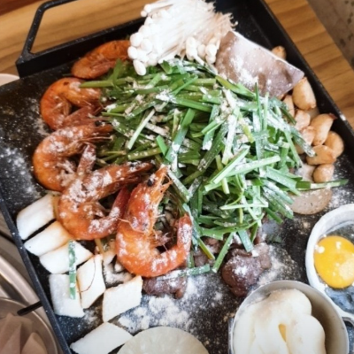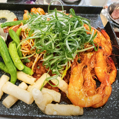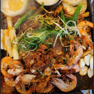 토핑오리 주물럭으로 먹었는데 새우 떡 등 여러가지가 들어있고 불맛나니 너무 맛있었어요.