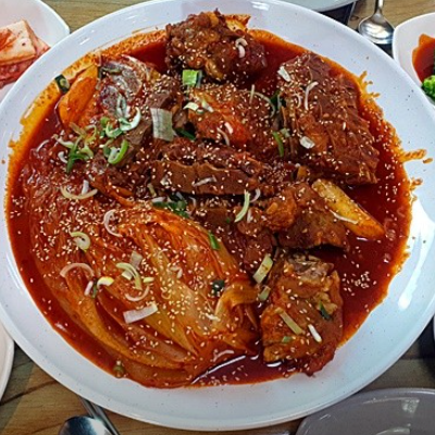 묵은지매운뼈찜 먹었는데 묵은지 맛이 최고입니다. 고기도 맛이 있었어요.