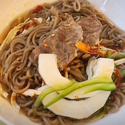 냉메밀은 새콤달콤한 쫄면과 비빔냉면 사이 맛입니다.