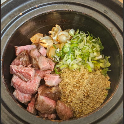약간 장조림 느낌의 맛도나고 짜장 느낌도 나는데 엄청 맛있어요. 솥밥 추천해요.