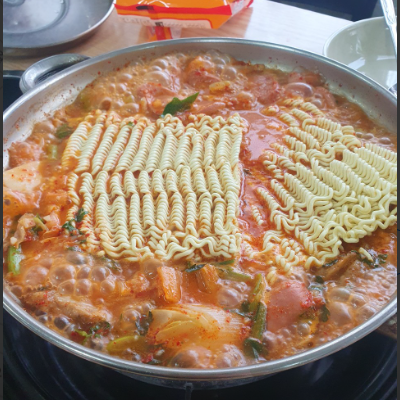 국물도 찐하고 너무 맛있어요. 햄,소세지 사리도 최고에요. 주로 포장해서 집에서 먹었어요.