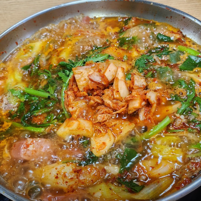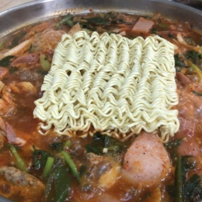 국물도 찐하고 너무 맛있어요. 햄,소세지 사리도 최고에요. 주로 포장해서 집에서 먹었어요.
