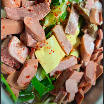 김치와 대파가 푸짐하게 들어있어요. 햄종류는 두가지정도인듯. 옛날부대찌개맛이 나서 가끔 생각나는 맛이에요.
