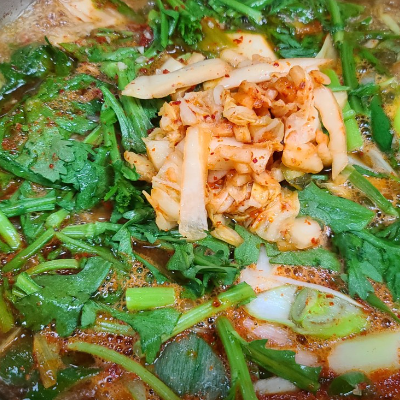 파, 쑥갓, 김치가 들어가서 그런가 깔끔 시원해요.