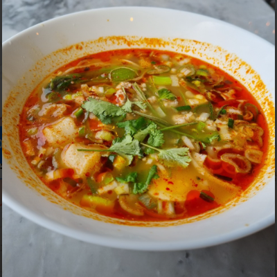 모두가 태국식 쌀국수 비프누들을 주문할때, 저는 똠양꿍 베이스의 똠양누들 주문했어요.