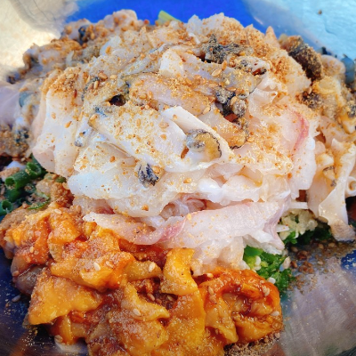 짬뽕물회랑 모둠회를 너무나 맛있게 먹었어요. 특히 길가, 해안선에 마련한 4인용 텐트에서 파도를 보며 먹을 수 있었어요.