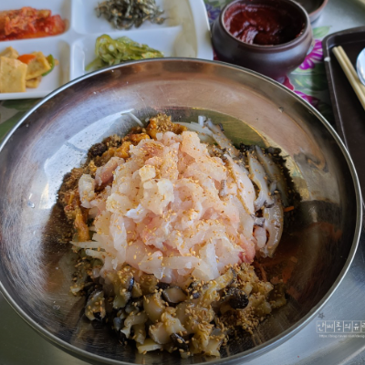 일반 물회와 비빔밥을 주문했는데, 사진처럼 회의 양도 많고 회 자체가 고소하고 맛있었습니다.