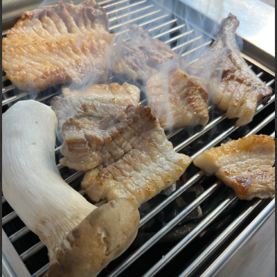 불판덕분에 고기가 쉽게 타지않고 숯향이 은은하게 배서 더 맛있게 먹을수 있었어요.