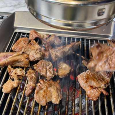 불판덕분에 고기가 쉽게 타지않고 숯향이 은은하게 배서 더 맛있게 먹을수 있었어요.