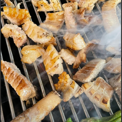 완전 캠핑갔을때 야외에서 먹는 고기맛이 나요. 기본으로 생돼지김치전골 나오는것도 대박인데 너무맛있어요.