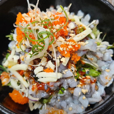 꿈틀거리는 생 낙지비빔밥이랑 양념이 특별한 초무침 호롱까지 다양하게 즐길 수 있어요.