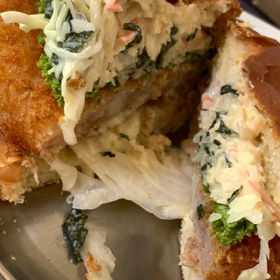 버거도 튀김패티에 와사비크림 섞인 샐러드가 있어서 느끼하지 않고 맛있었습니다.