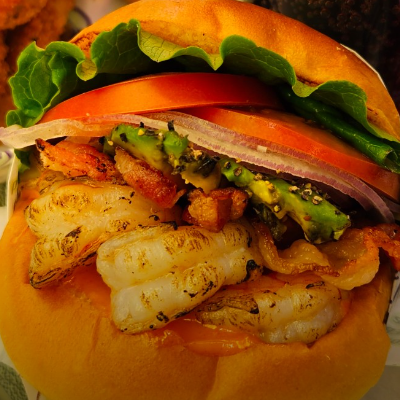 스리라차 쉬림프버거 주문했는데 신선한 야채와 두툼한 새우패티에 느끼한맛을 잡아주는 스리라차소스까지 조합이 정말 좋아요.