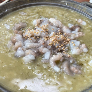 용궁죽에 낙지가 너무 부드럽고 맛있었어요.