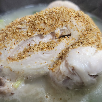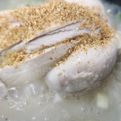 감자삼계탕 처음 먹어봤는데 국물이 걸쭉하고 담백해요. 고기가 부들부들, 닭죽도 부드럽고 맛있습니다.