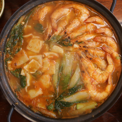 소주가 땡기는 국물에 새우와수제비를 넣어 넘 맛나요.