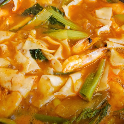 소주가 땡기는 국물에 새우와수제비를 넣어 넘 맛나요.