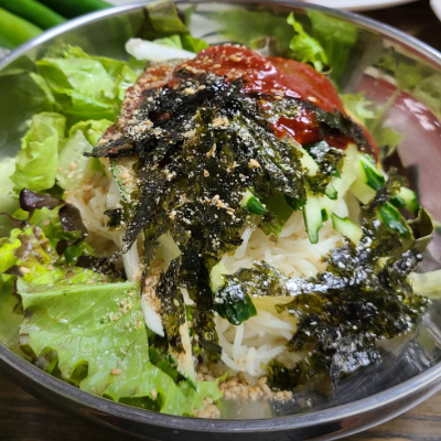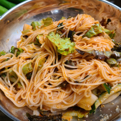 냉칼국수에 김치 한점이랑 같이 먹으니 더더더 맛이 좋은 것 같아요.