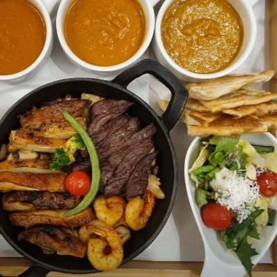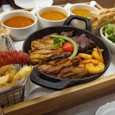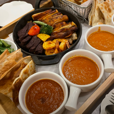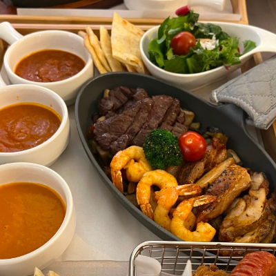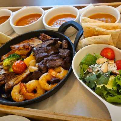 BBQ 철판과 난 그리고 모둠 커틀렛이 나오는 한상 가득 메뉴 맛보길 추천할게요.