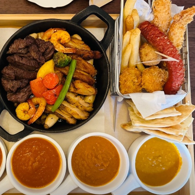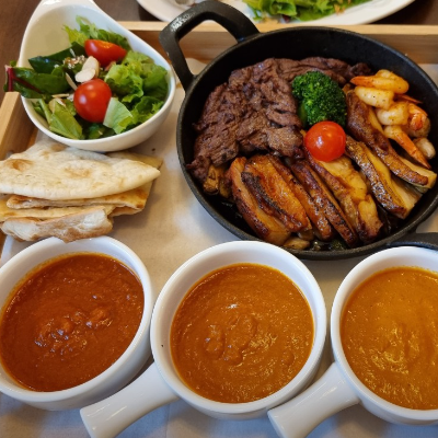 BBQ 철판과 난 그리고 모둠 커틀렛이 나오는 한상 가득 메뉴 맛보길 추천할게요.