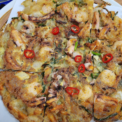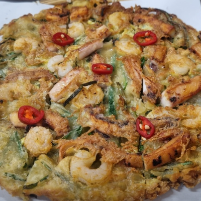파전도 오징어부터 새우, 갖은 야채 푸짐하게 들어가서 두툼하고 말 그대로 겉바속촉 이예요.