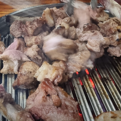 해오름식당의 시그니처인 흑돼지 옛날 통갈비를 시켜 먹었어요. 여기는 사장님이 말도 재밌게 하시고 맛있게 고기를 구워주세요.