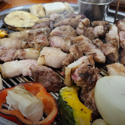 파프리카 고구마 양파 같이 구워서 먹는 야채도 푸짐했습니다. 사장님도 친절하시고 건물앞에 바로 주차할수 있어요.