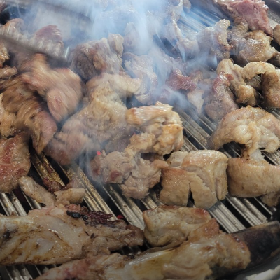 초벌로 구워주시고 자리에서 숯불로 다시 구워주시는데 연기로 구워주셔서 고기의 육즙과 풍미가 정말 맛있었어요.