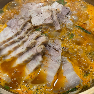 수육전골 맛있는데 좀 매운듯 매운거 못드시면 덜 맵게 해달라고 주문하면 돼요.