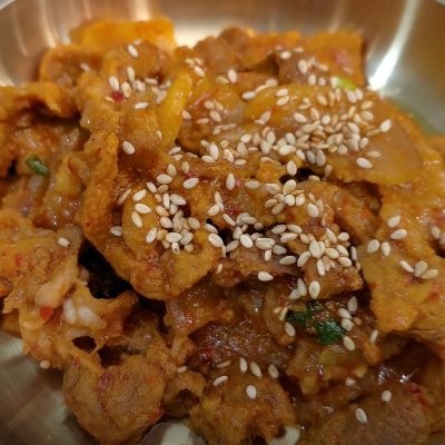 제육 고기 너무 좋은 고기고~ 잡내 하나 없이 넘 맛있어요. 계란찜도 단단한 푸딩같은 식감으로 맛이 좋아요.