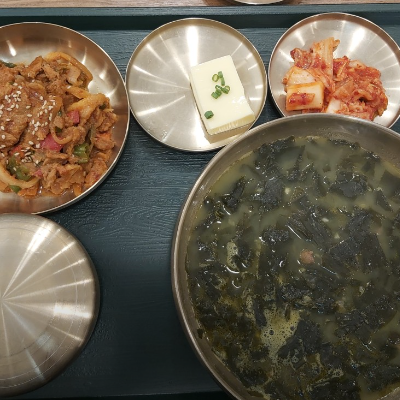 9천원에 미역국+제육. 원래는 제육 먹어보려 갔는데 미역국에 반하고 왔네요.