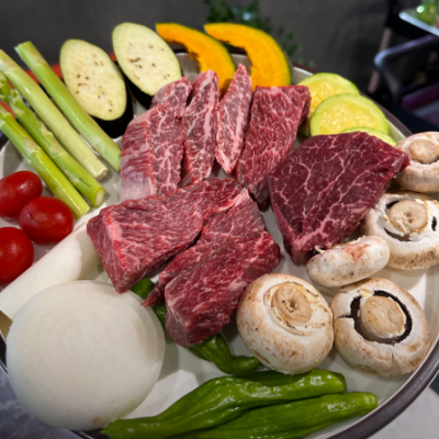 프리미엄 최고급 한우답게 색깔이 역대급 먹음직스러운 비주얼이었어요.