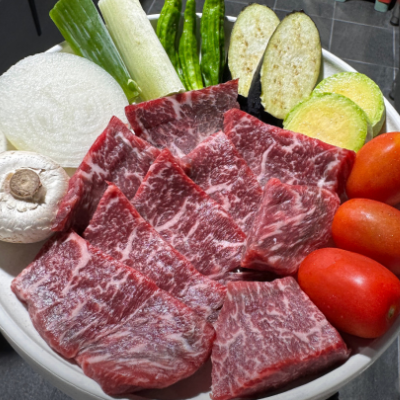 프리미엄 최고급 한우답게 색깔이 역대급 먹음직스러운 비주얼이었어요.