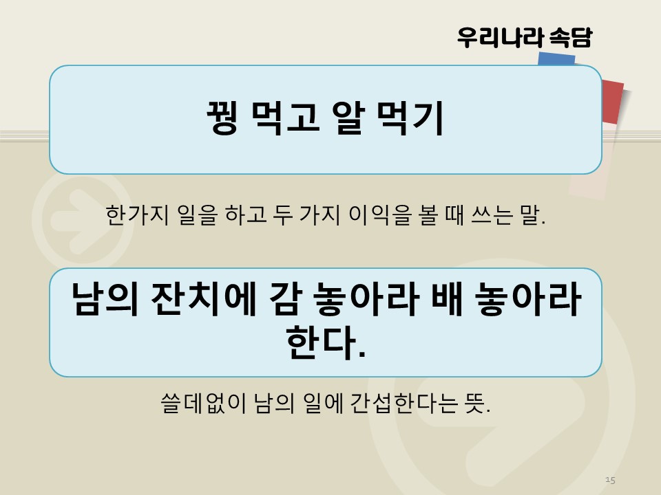 지난시간에 이어 우리나라 속담 100가지 그 두번째 시간입니다. 포스팅을 바로바로 올려드려야 하는데 1일 1포스팅이 쉽지가 않네요. 오늘 배워볼 속담 안내입니다. 오늘은 8가지의 속담에 대해 알아보겠습니다.