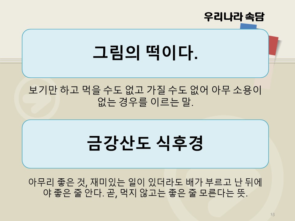 속담 공부도 좋지만 금강산도 식후경이니 밥 잘 챙겨 먹고 배워봅시다.