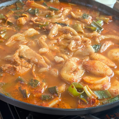 얼큰한 닭볶음탕에 만두랑 칼국수가 빠져있네요. 너무 맛있어요.