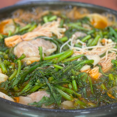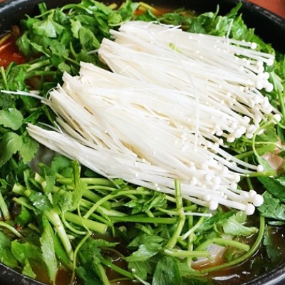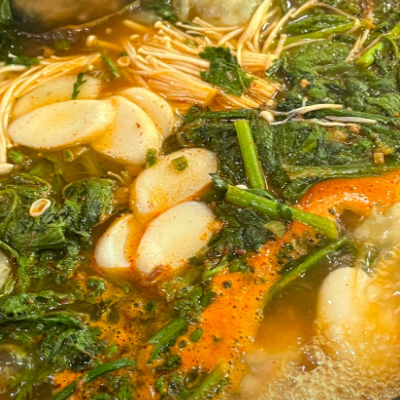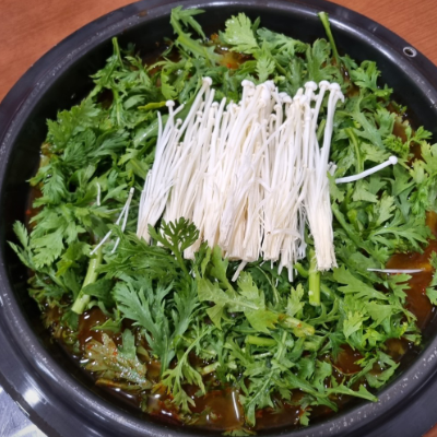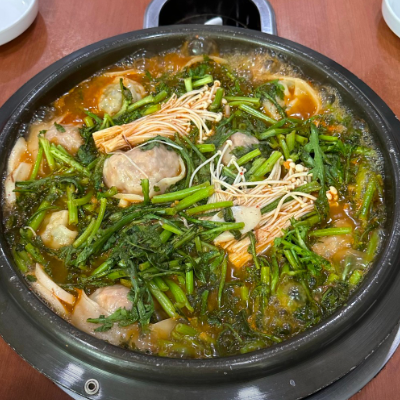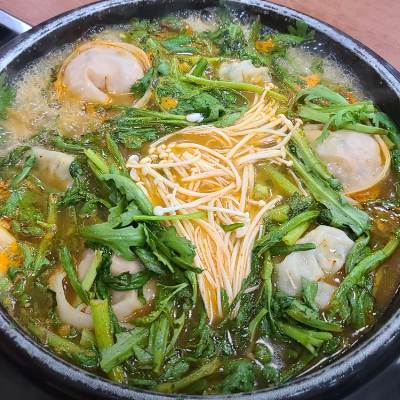 만두전골에 쑥갓이 많이 들어가 있어서 너무 맛있었습니다.