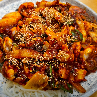 낙지가 문어인줄 알았어요. 크기가 엄청나요. 순한맛으로 먹었는데 신라면 맵기라더니 살짝 매콤했어요.