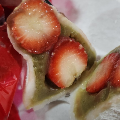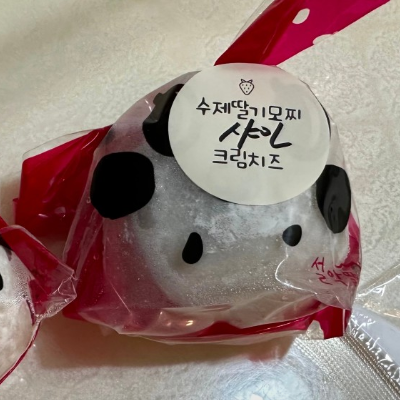 그냥 팥만 들은 딸기모찌는 많이 봤는데 흑임자가 들어간건 처음봐요. 맛있었어요.